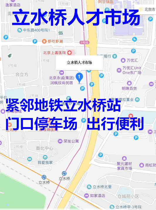 ? ? ? ?立水橋人才招聘會位于北京市朝陽區(qū)、海淀區(qū)、昌平區(qū)三區(qū)交界處,交通便利,緊鄰地鐵5號線13號線立水橋站,5號線為北京市軌道交通路網(wǎng)中首條貫穿城市中心、連接南北地區(qū)的快速軌道交通干線,方便北京南城北城企業(yè)及求職者招聘求職;13號線線路起點(diǎn)西直門,向北經(jīng)高校云集學(xué)院路、清華園、五道口至企業(yè)云集的上地、西二旗、北苑、望京,然后途徑全亞洲最大居住社區(qū)北京回天地區(qū)(回龍觀及天通苑)后至東直門,方便企業(yè)招聘及各大高校學(xué)生、居民求職。立水橋人才市場立足北京,服務(wù)全國,為經(jīng)濟(jì)建設(shè)和社會發(fā)展提供人力資源保障。